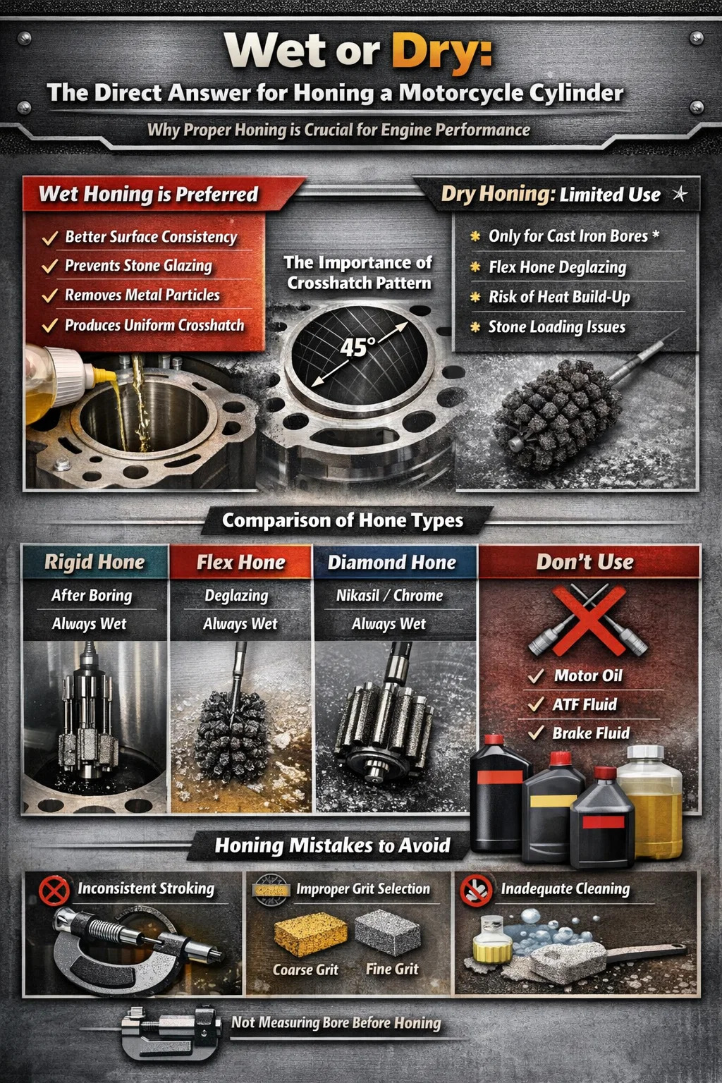 Erros comuns de brunimento que arruínam os furos dos cilindros da motocicleta